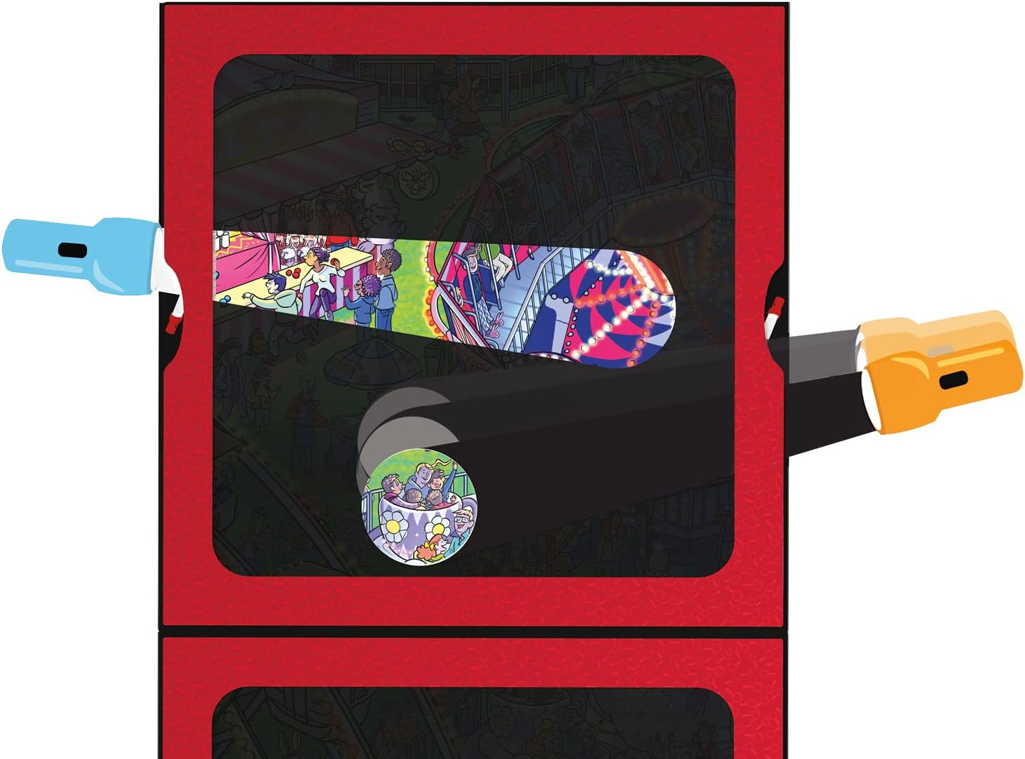 Team up and work together to search for 150 things to find in this nighttime carnival scene loaded with surprises. Use your Flashlight wand to make the scene on the game board magically appear, and hunt for cleverly hidden things to find on a game board measuring over 3 feet long. Look carefully, because all objects are cleverly disguised in a variety of Hidden Pictures ways. The trickier the search, the more points you can score. Race to be the first team to find enough things to score the most points and win!
