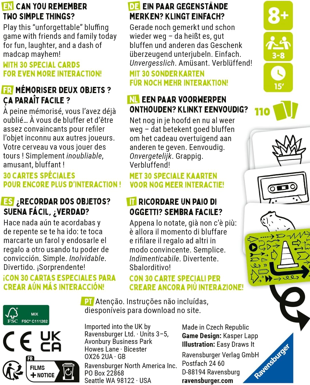 Fun Bluffing & Memory Party Card Game for 3-8 Players | Fun Entertainment for Families |Travel Friendly
